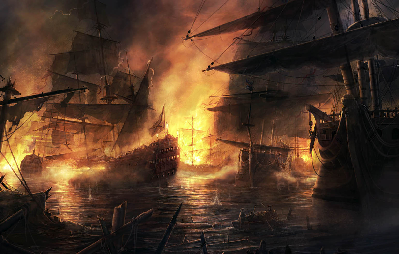 Скачать обои для рабочего стола Закат на поле сражений в море и фото