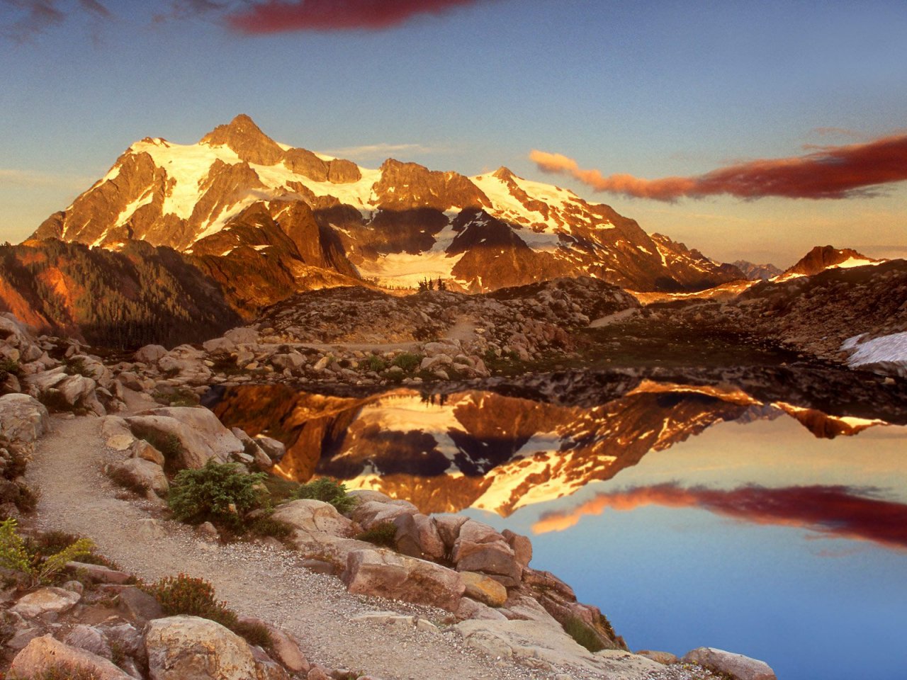 Скачать обои для рабочего стола закат приходит в горы и фото
