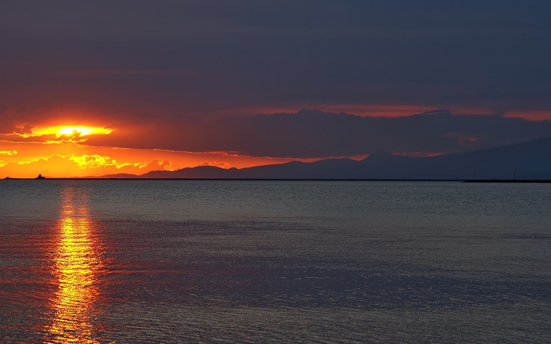 Скачать обои для рабочего стола Закат, пробивший облака и фото