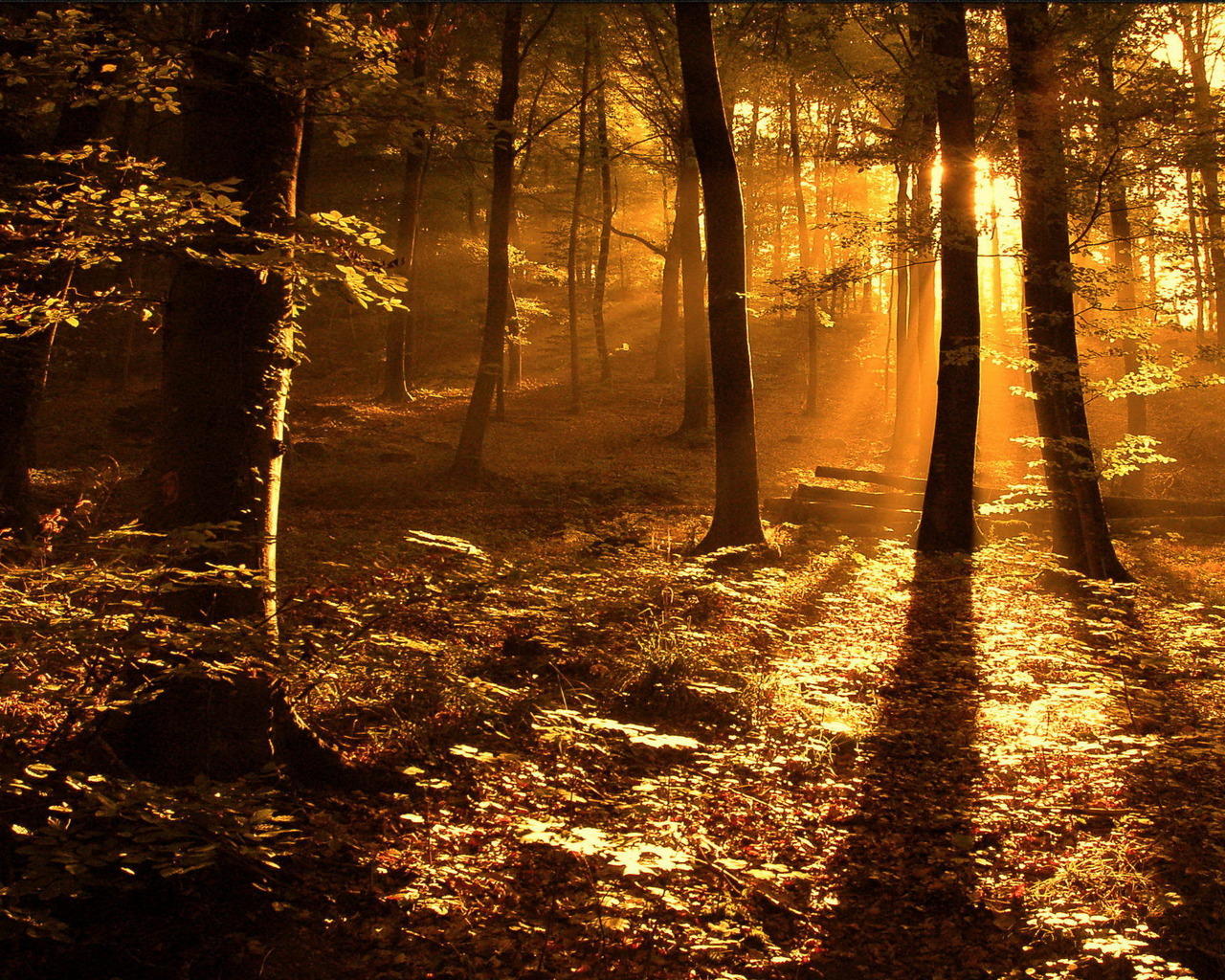Скачать обои для рабочего стола Закат солнца в лесу и фото