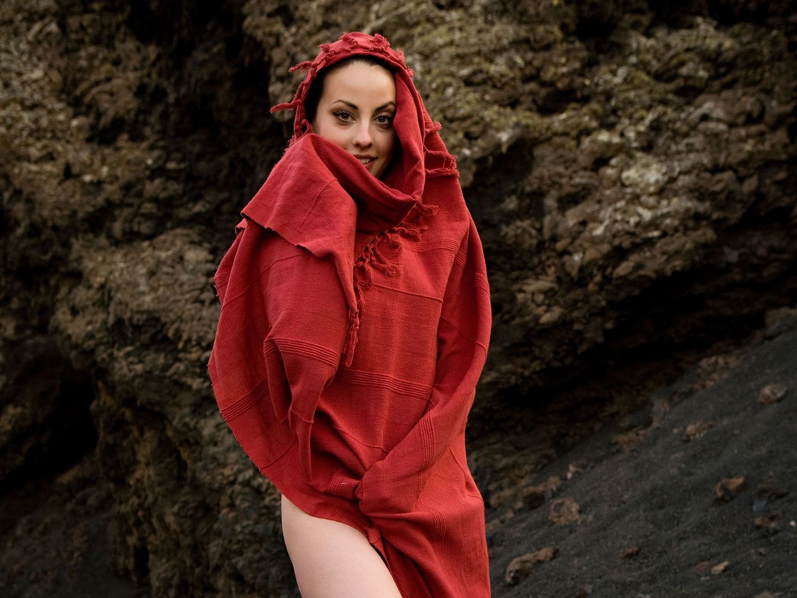 Скачать обои для рабочего стола Замоталась в красное покрывало и фото