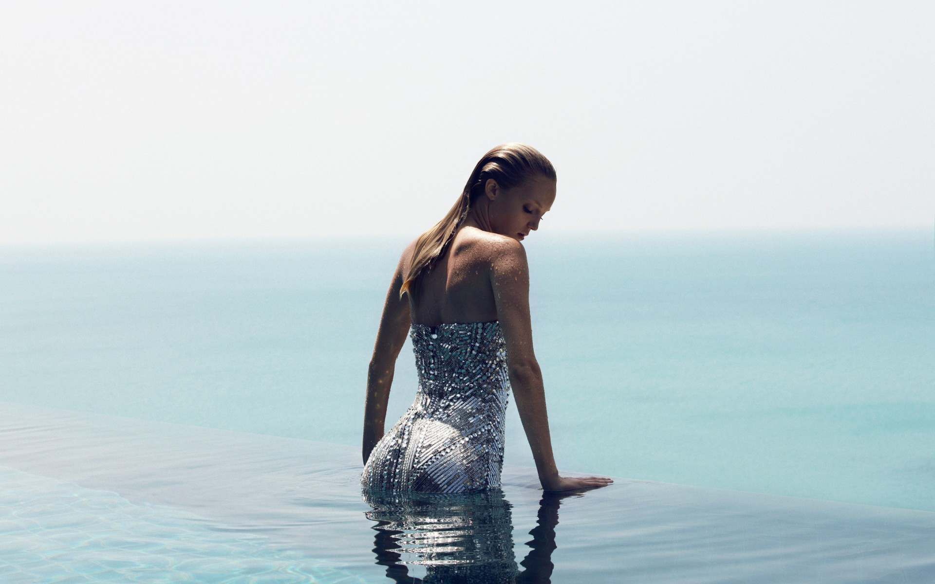 Скачать обои для рабочего стола Зашла в вoду в сарафане и фото