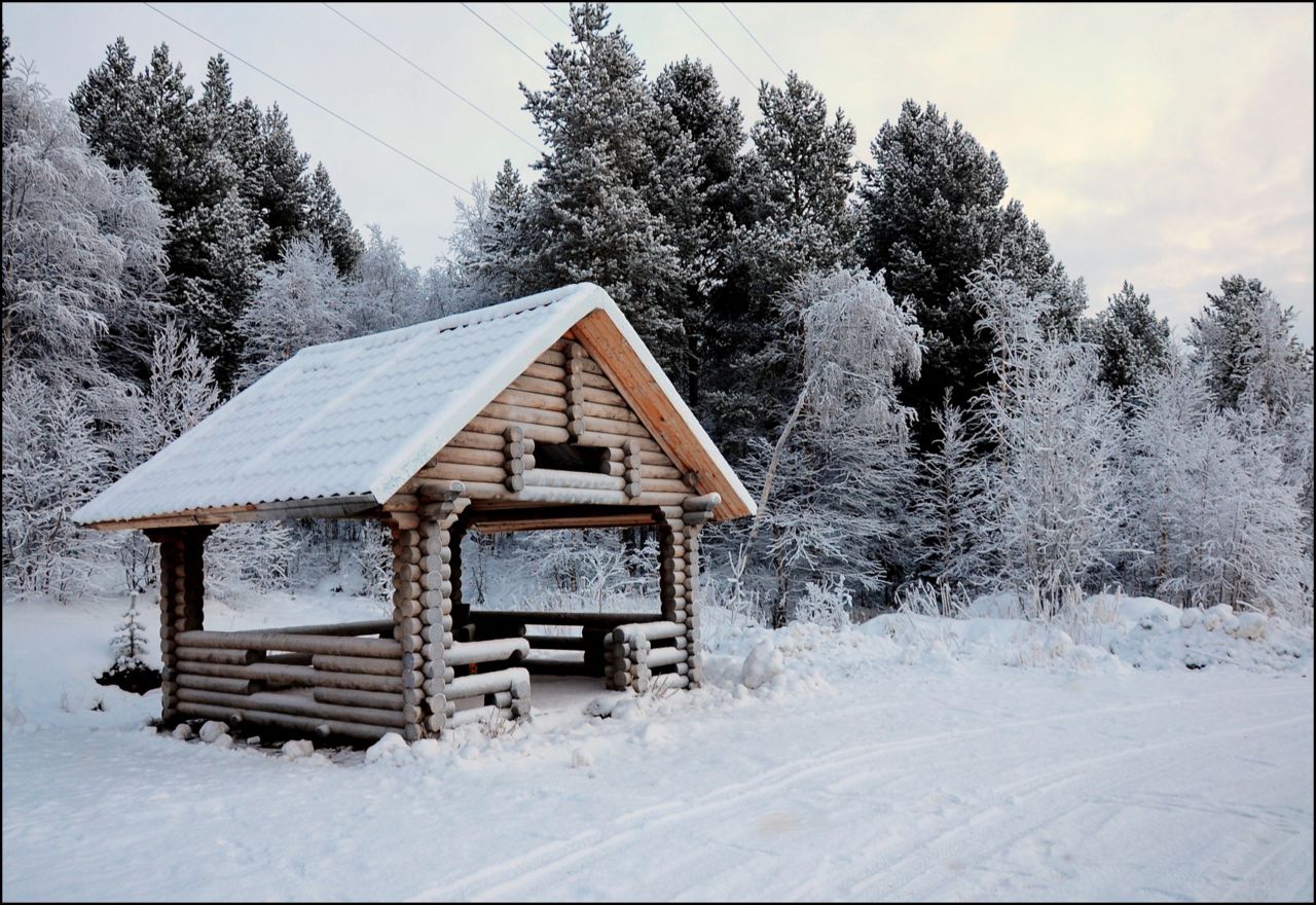 Скачать обои для рабочего стола Заснеженная беседка и фото