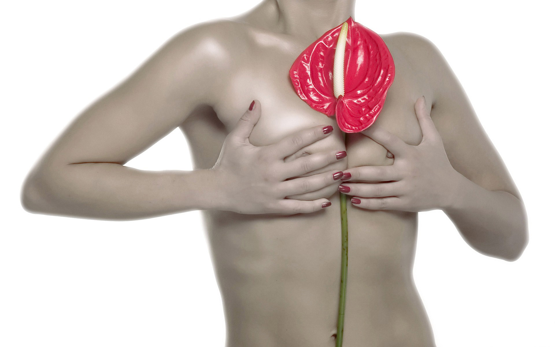 Скачать обои для рабочего стола Зажала цветок калы между сисек и фото