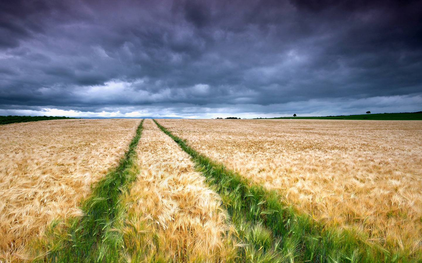Похожие обои на Зеленая колея по спелому полю ржи: