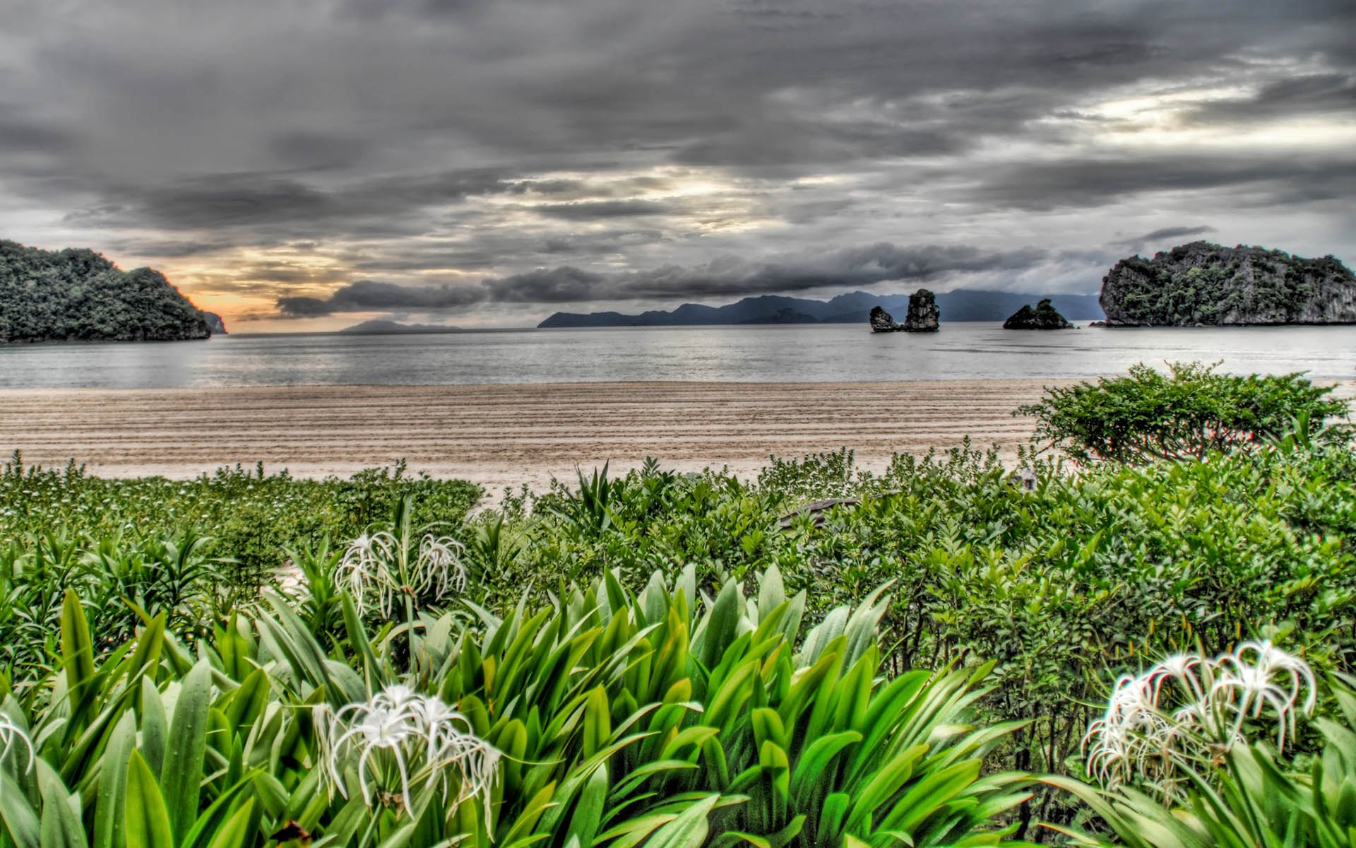 Скачать обои для рабочего стола Зеленая трава на берегу и фото