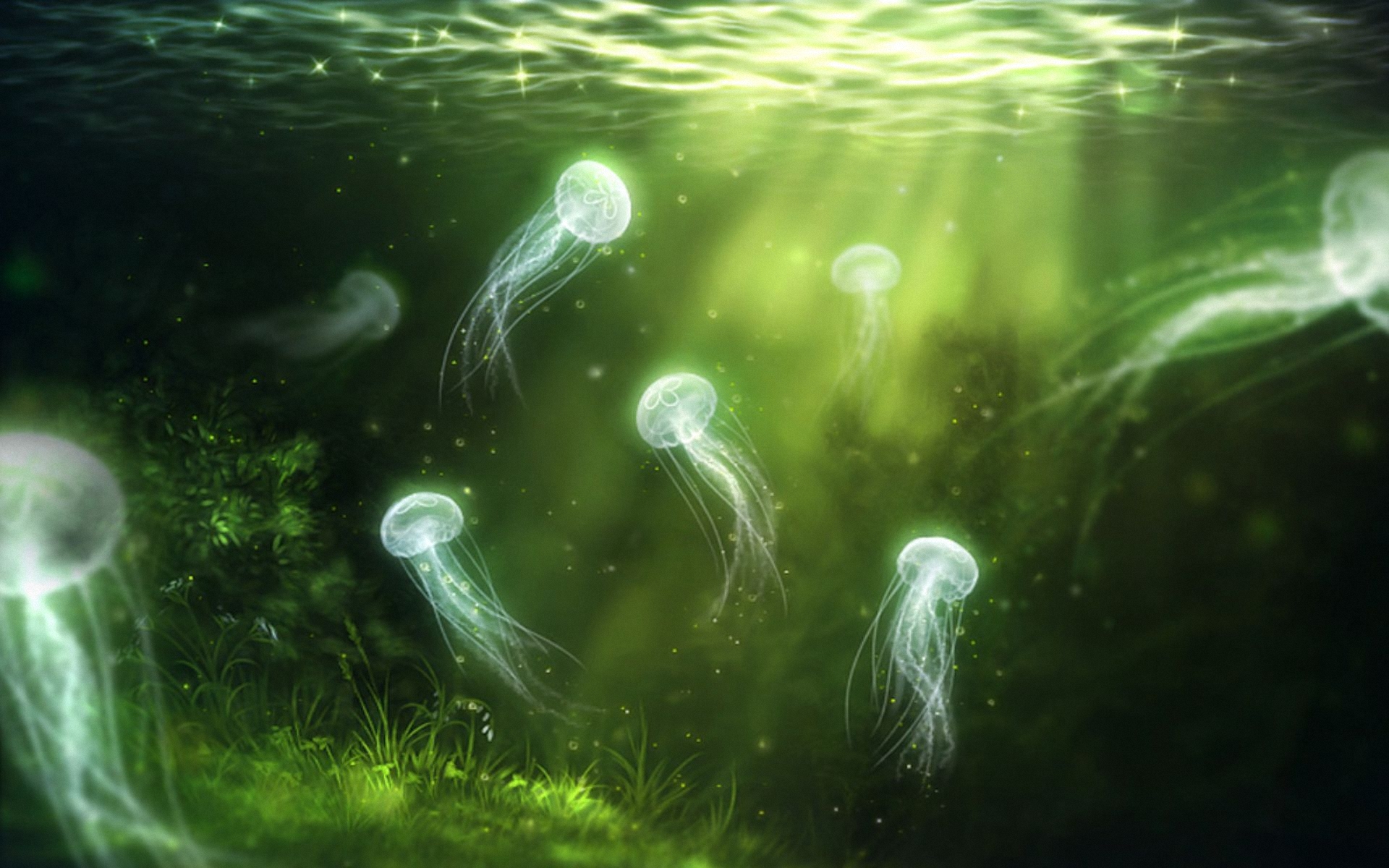 Скачать обои для рабочего стола Зеленое царство медуз и фото
