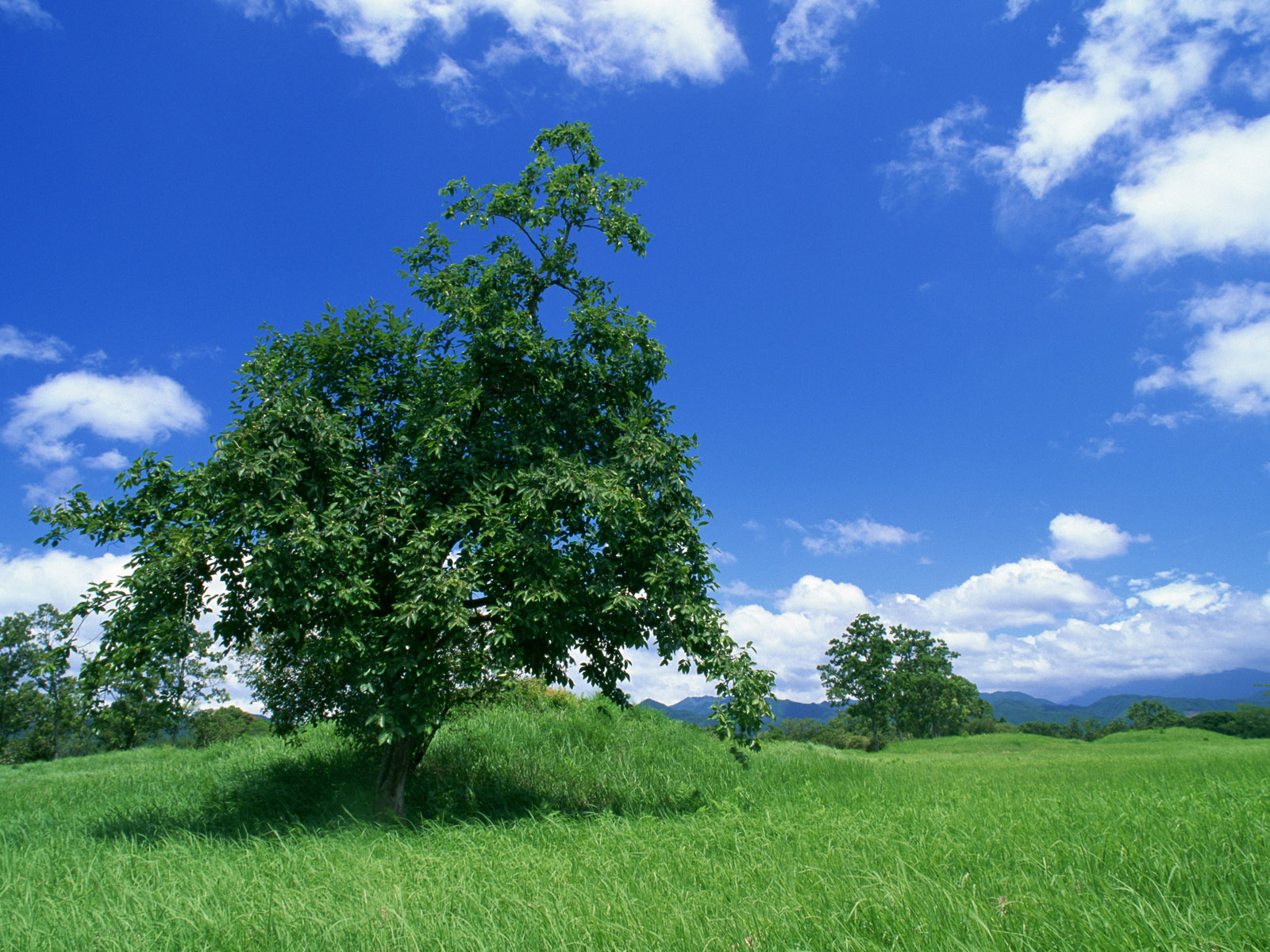 Скачать обои для рабочего стола Зеленое дерево на поле и фото