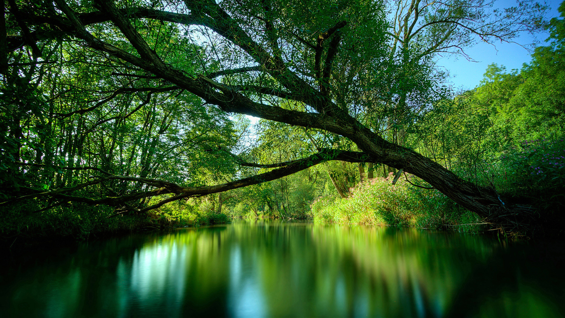 Похожие обои на Зеленое дерево с сочной листвой нависло над тихим прудом: