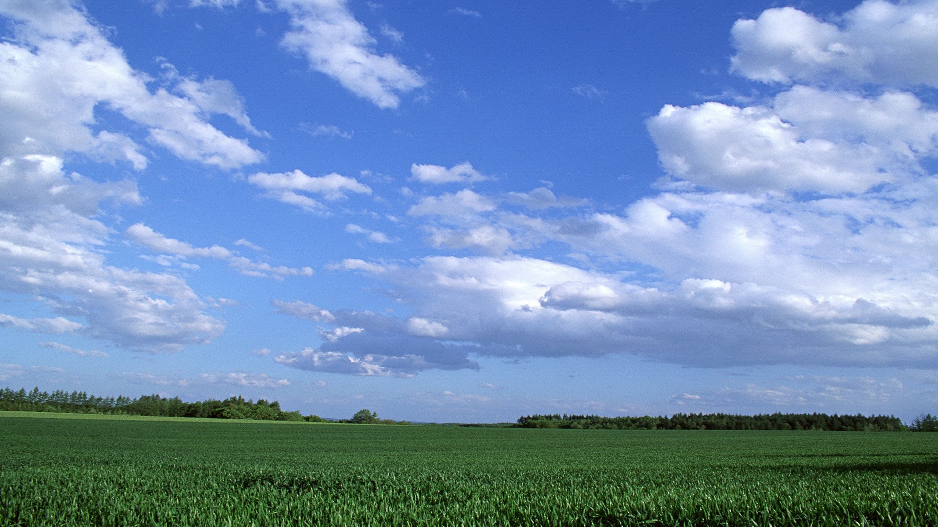 Скачать обои для рабочего стола Зеленое поле под голубым небом и фото
