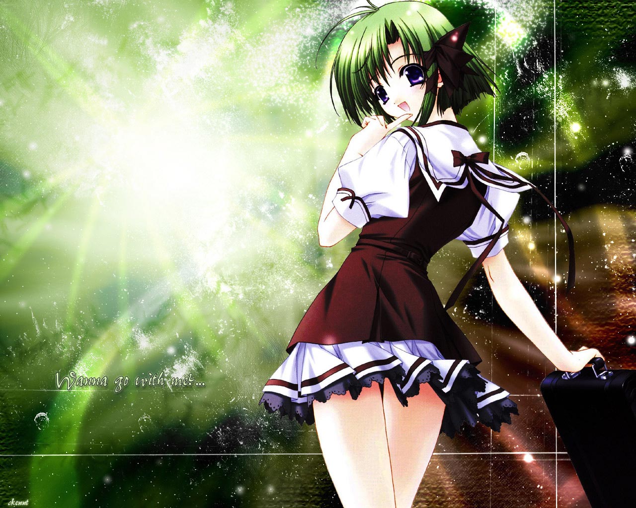 Скачать обои для рабочего стола Зеленоволосая Сико на зеленом фоне сзади и фото