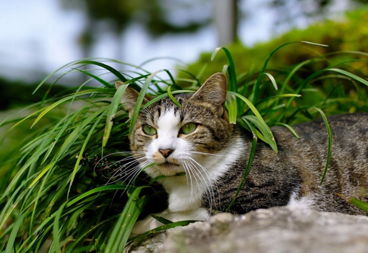 Скачать обои для рабочего стола Зелёные глазки в зелёной травке и фото