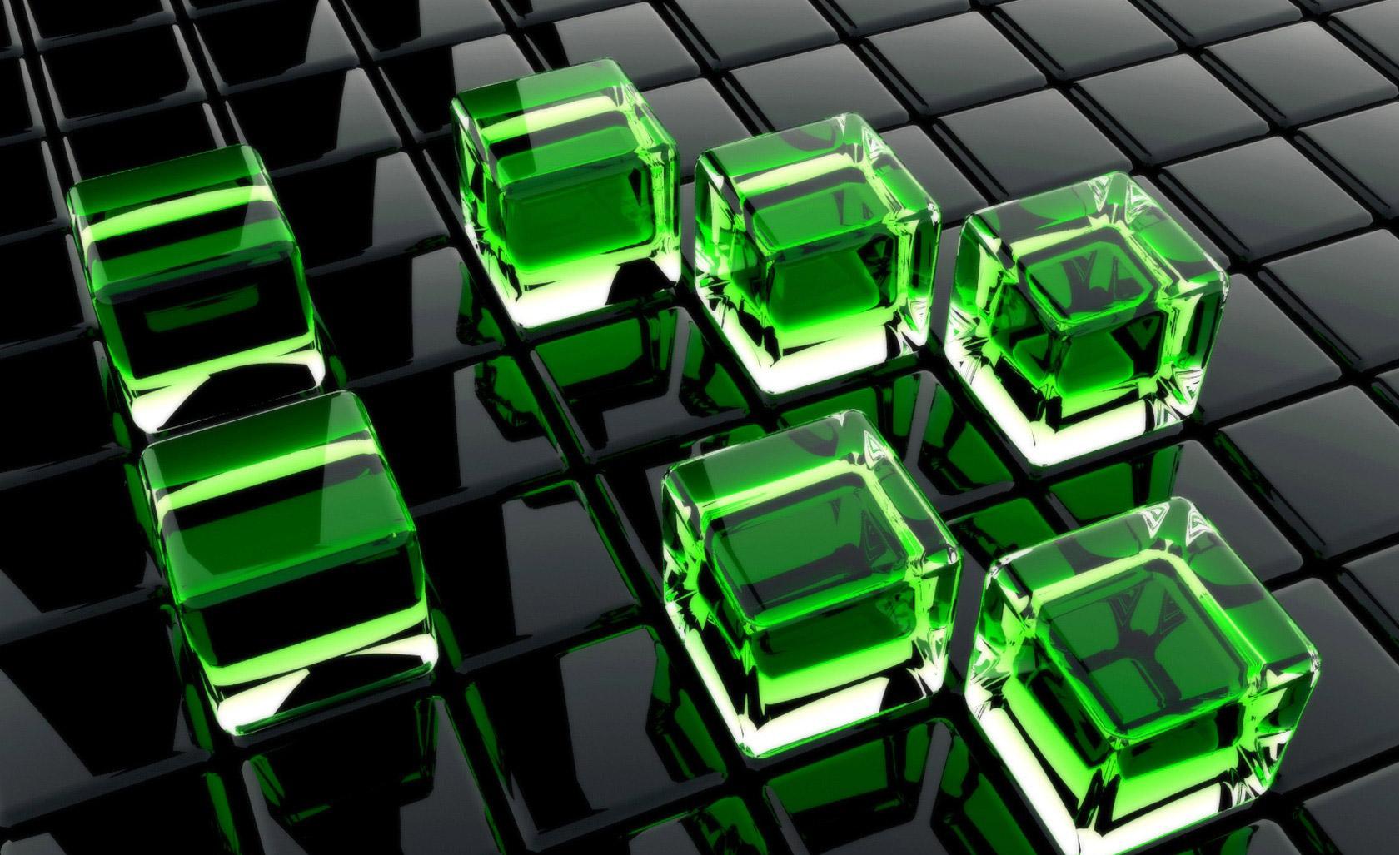 Скачать обои для рабочего стола Зеленые кубики на черном фоне и фото