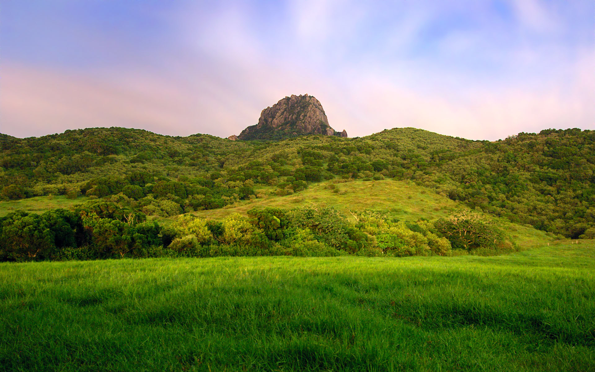 Скачать обои для рабочего стола Зеленые леса и поля на пути к горе и фото