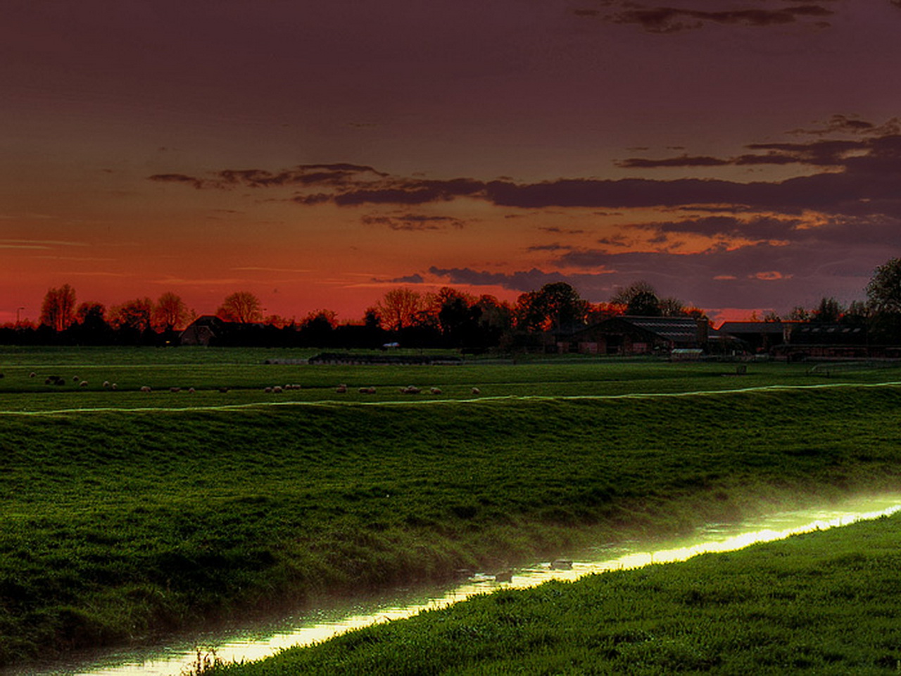 Скачать обои для рабочего стола Зеленые пастбища на закате и фото