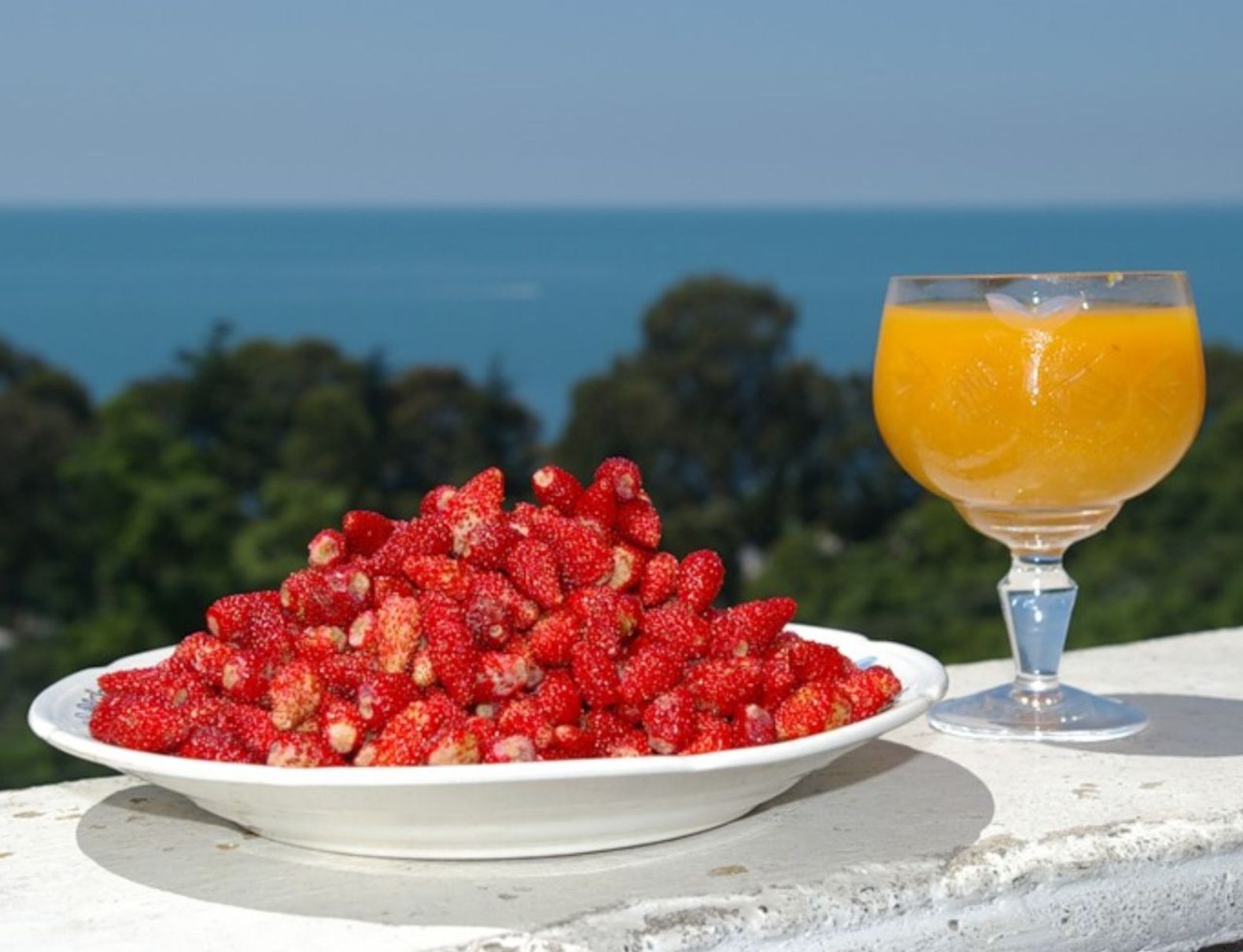 Скачать обои для рабочего стола Земляника и апельсиновый сок и фото