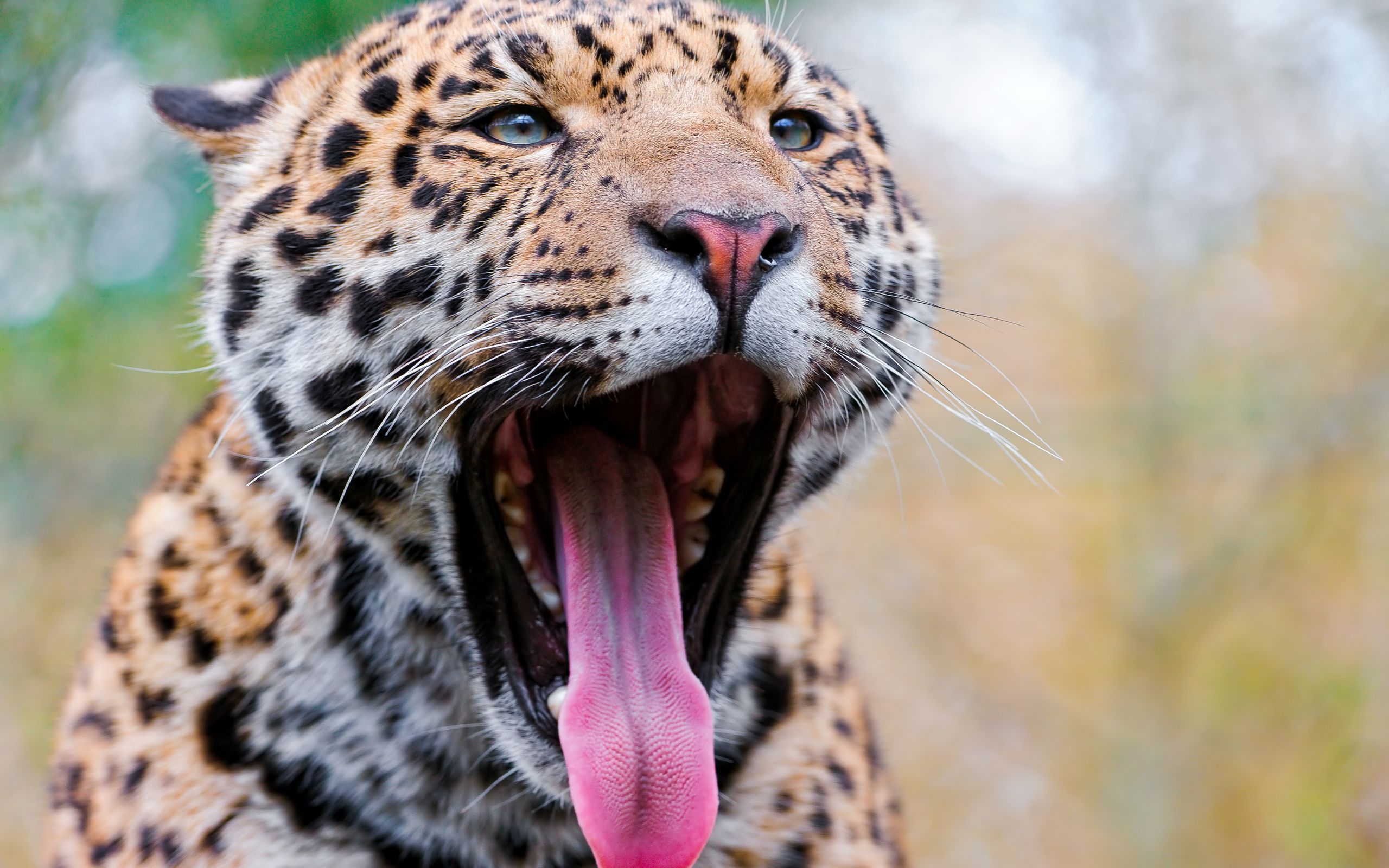 Скачать обои для рабочего стола Зевающий ягуар и фото