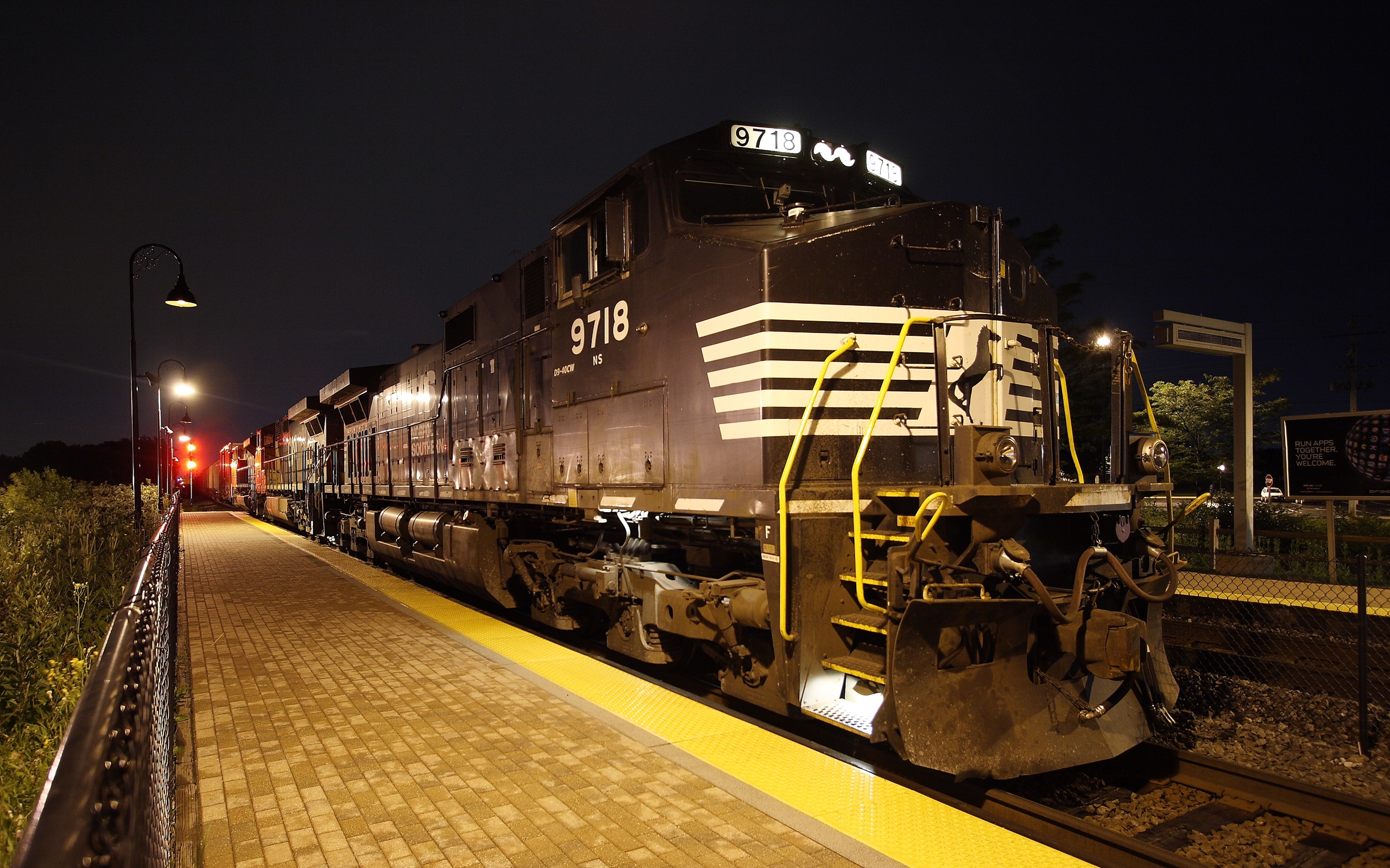 Скачать обои для рабочего стола Железнодорожная станция и поезд, ночной вид и фото