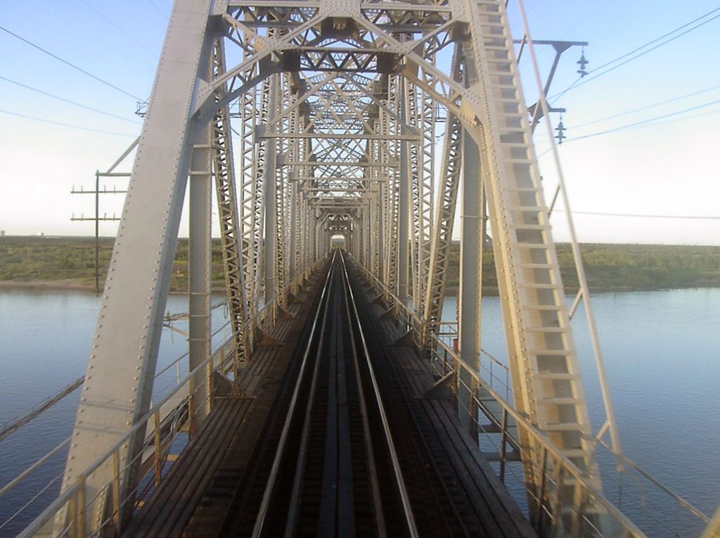 Скачать обои для рабочего стола Железнодорожный мост через реку Печора и фото