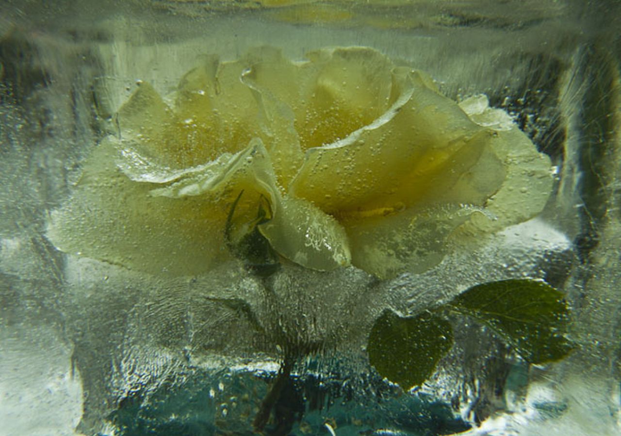 Скачать обои для рабочего стола Жёлтая роза и лёд и фото
