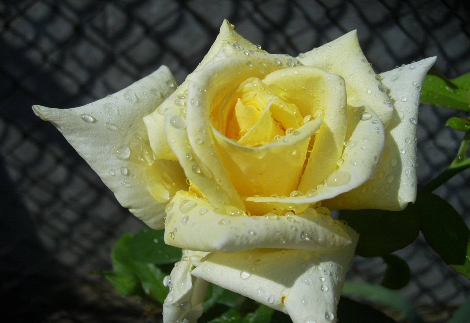 Скачать обои для рабочего стола Желтая роза в росе и фото