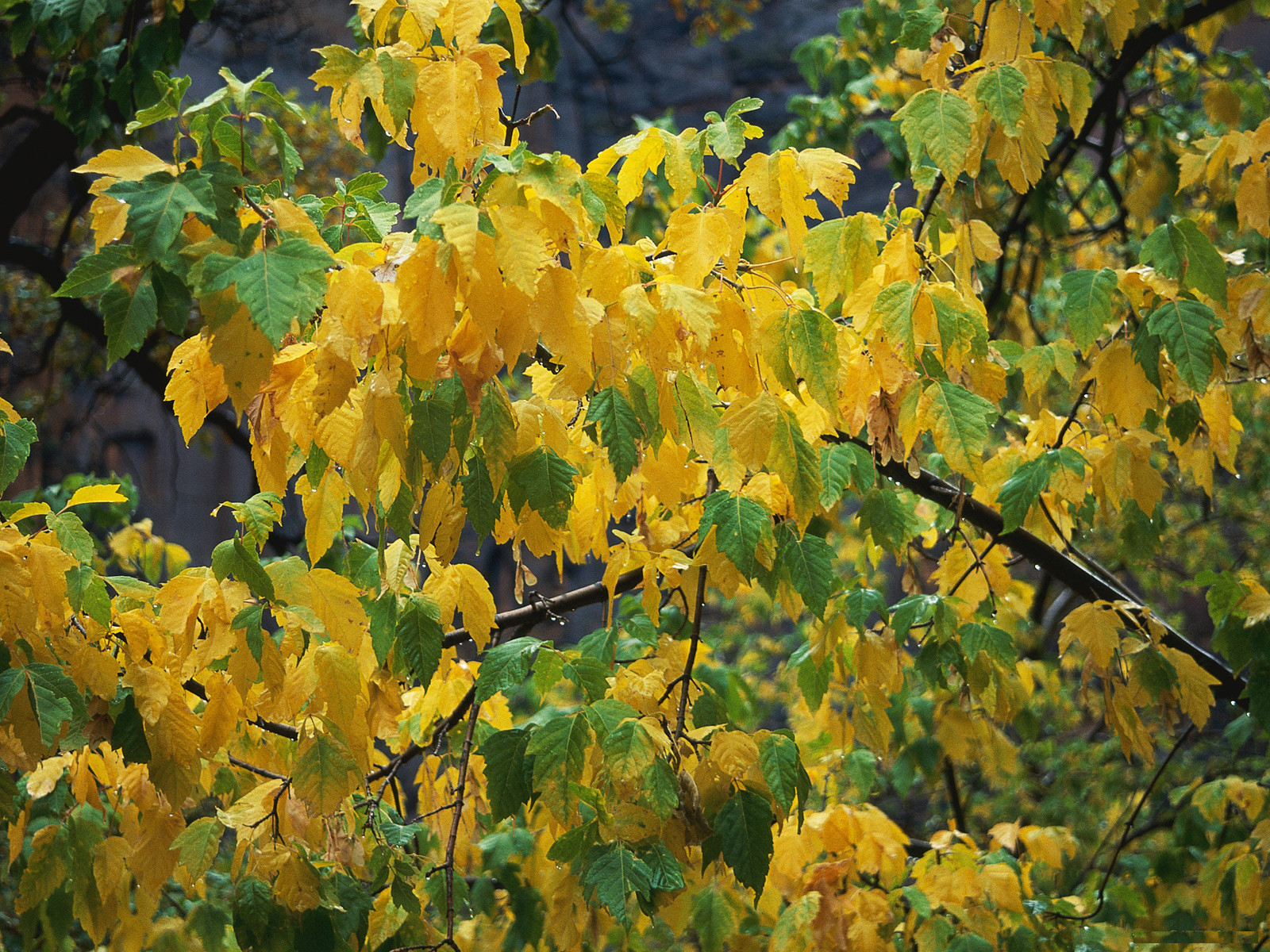 Скачать обои для рабочего стола Желтеющая листва под дождeм и фото