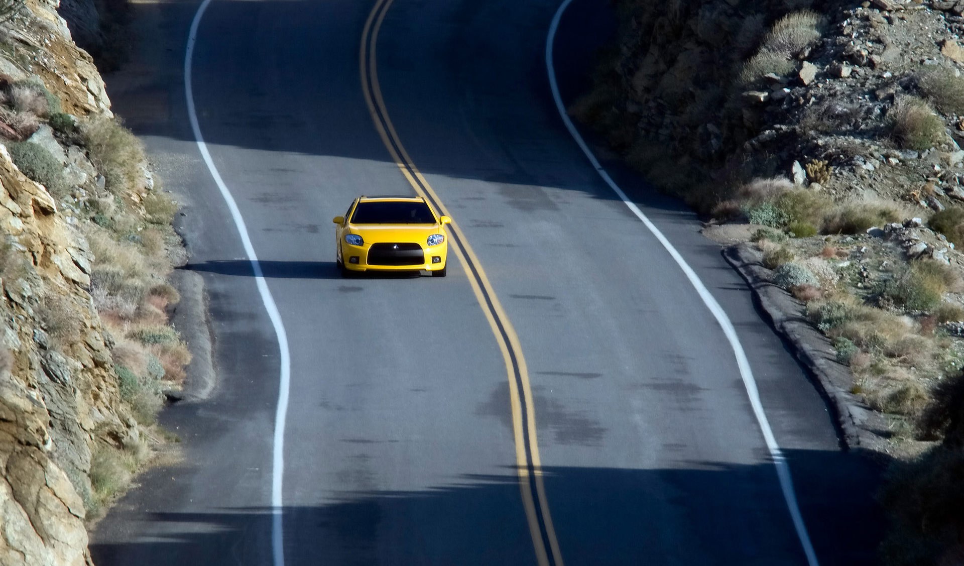 Скачать обои для рабочего стола Желтое авто в пути и фото