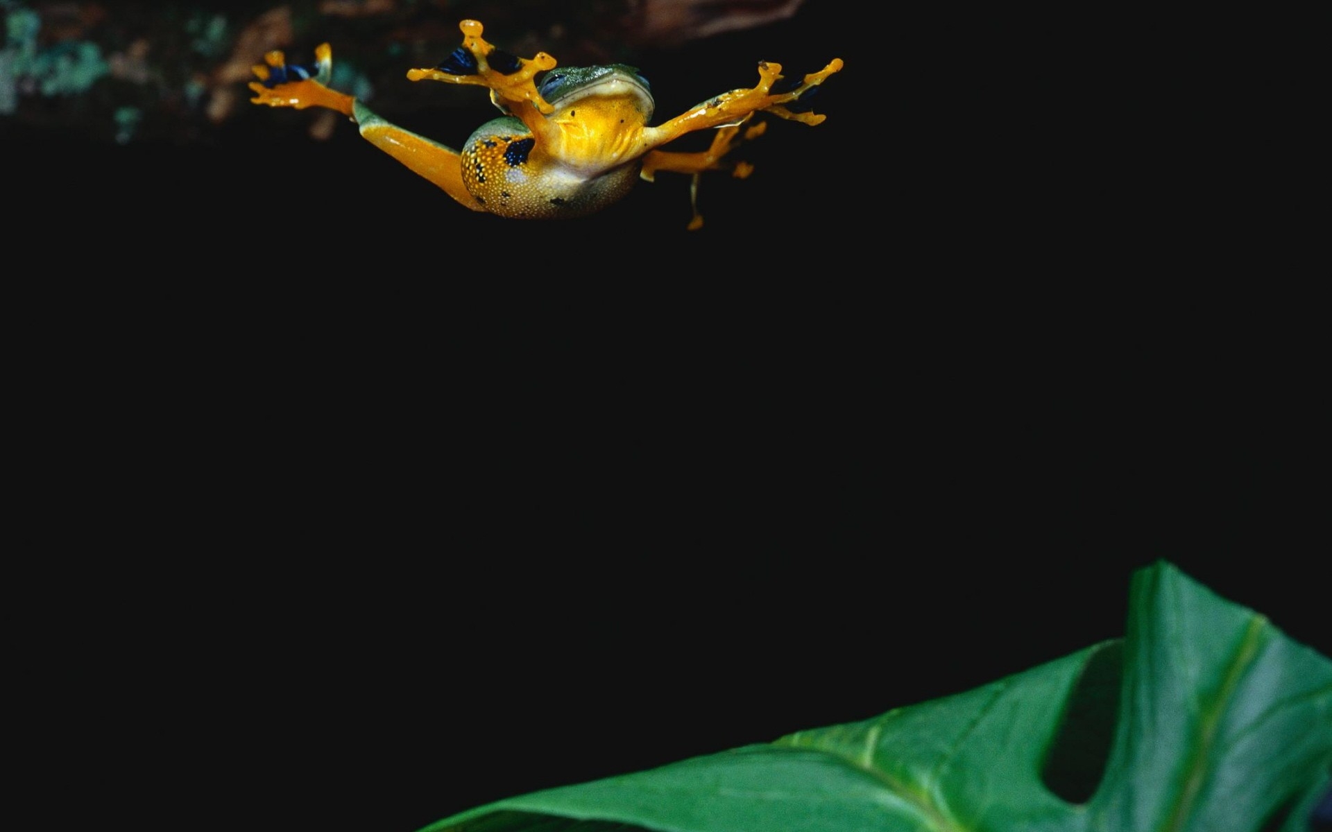 Скачать обои для рабочего стола Желтопузая лягушка в полете и фото