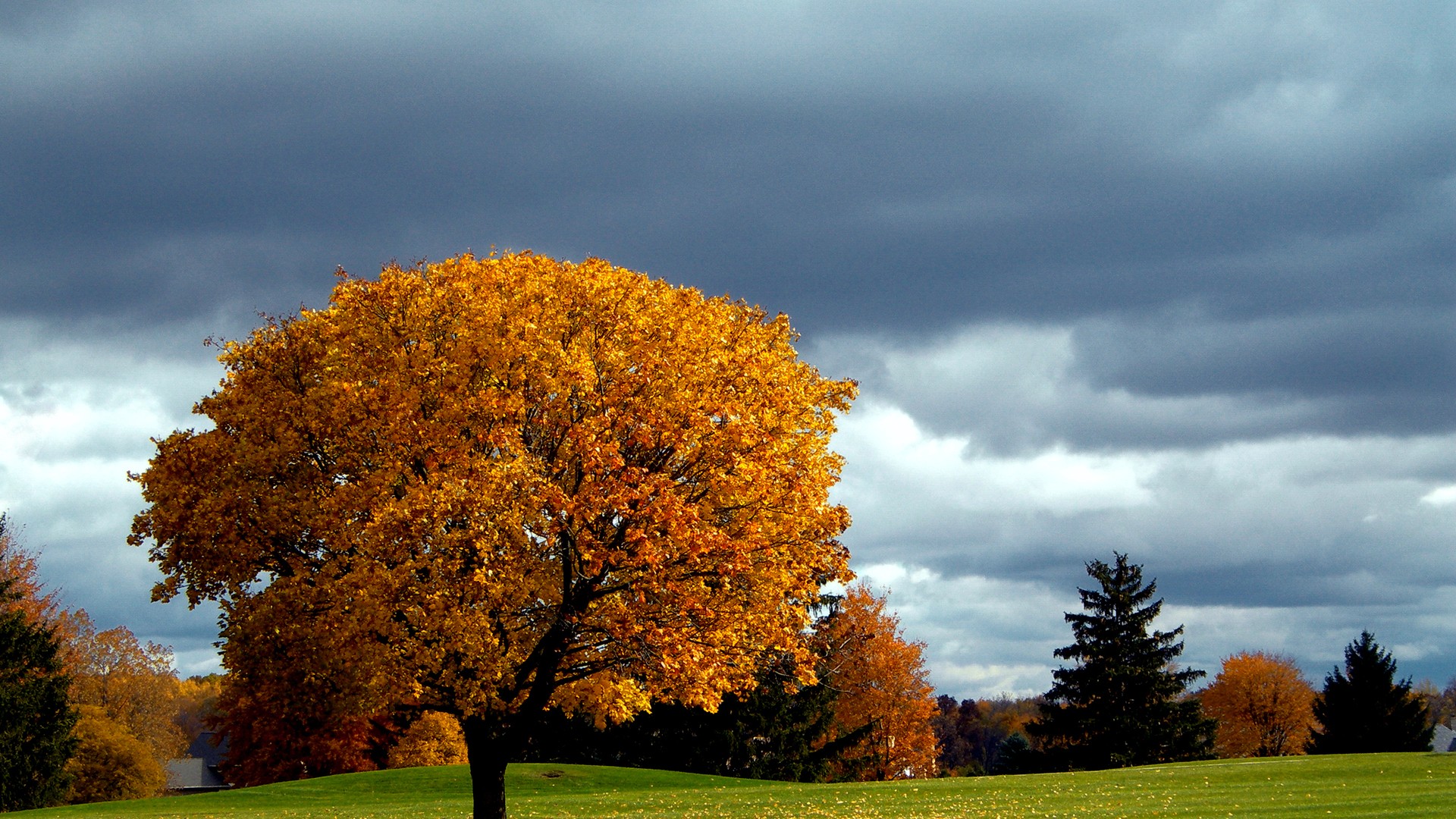 Похожие обои на Желтые кроны осенних деревьев осенью в поле: