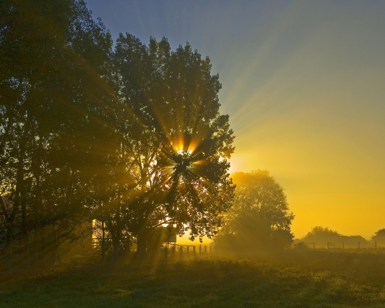 Скачать обои для рабочего стола Желтые лучи солнца и фото