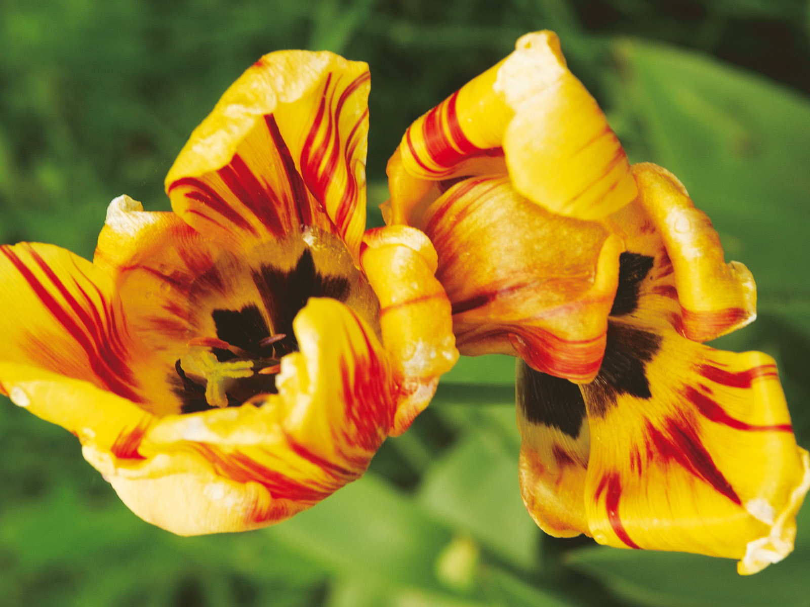 Скачать обои для рабочего стола Желтые тюльпаны в саду и фото