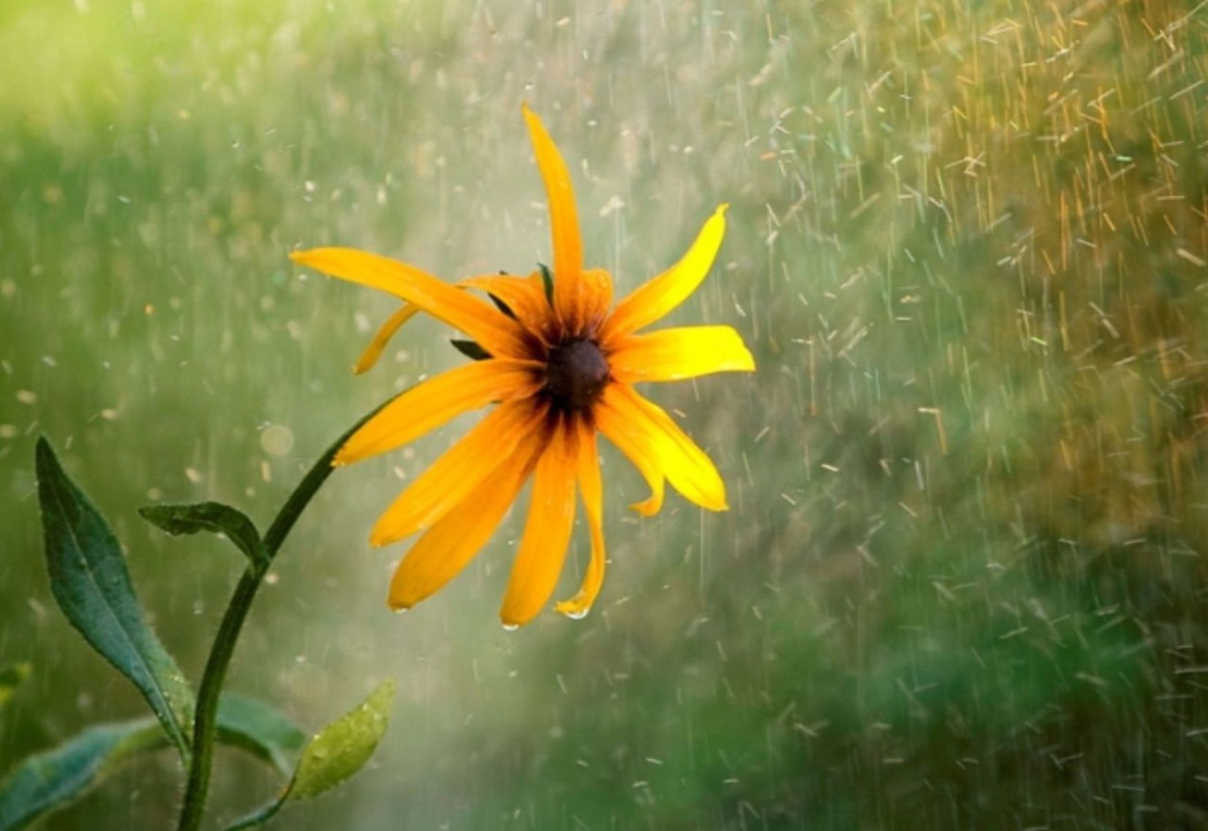 Скачать обои для рабочего стола Жёлтый цветок под дождём и фото