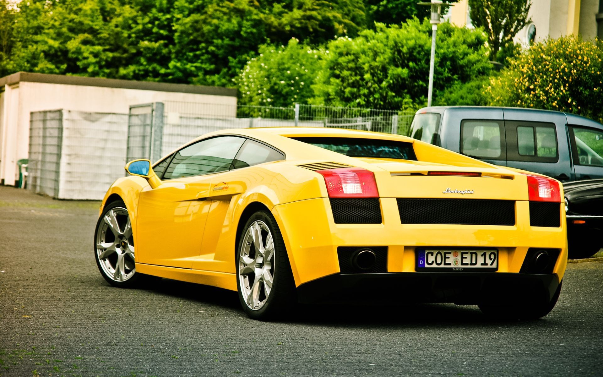 Скачать обои для рабочего стола Желтый Ламборджини во дворе и фото