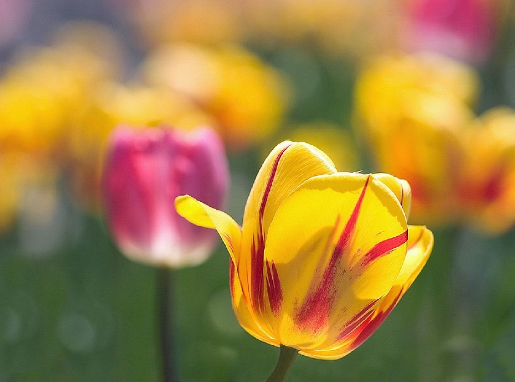 Скачать обои для рабочего стола Жёлтый тюльпан с красными перьями и фото
