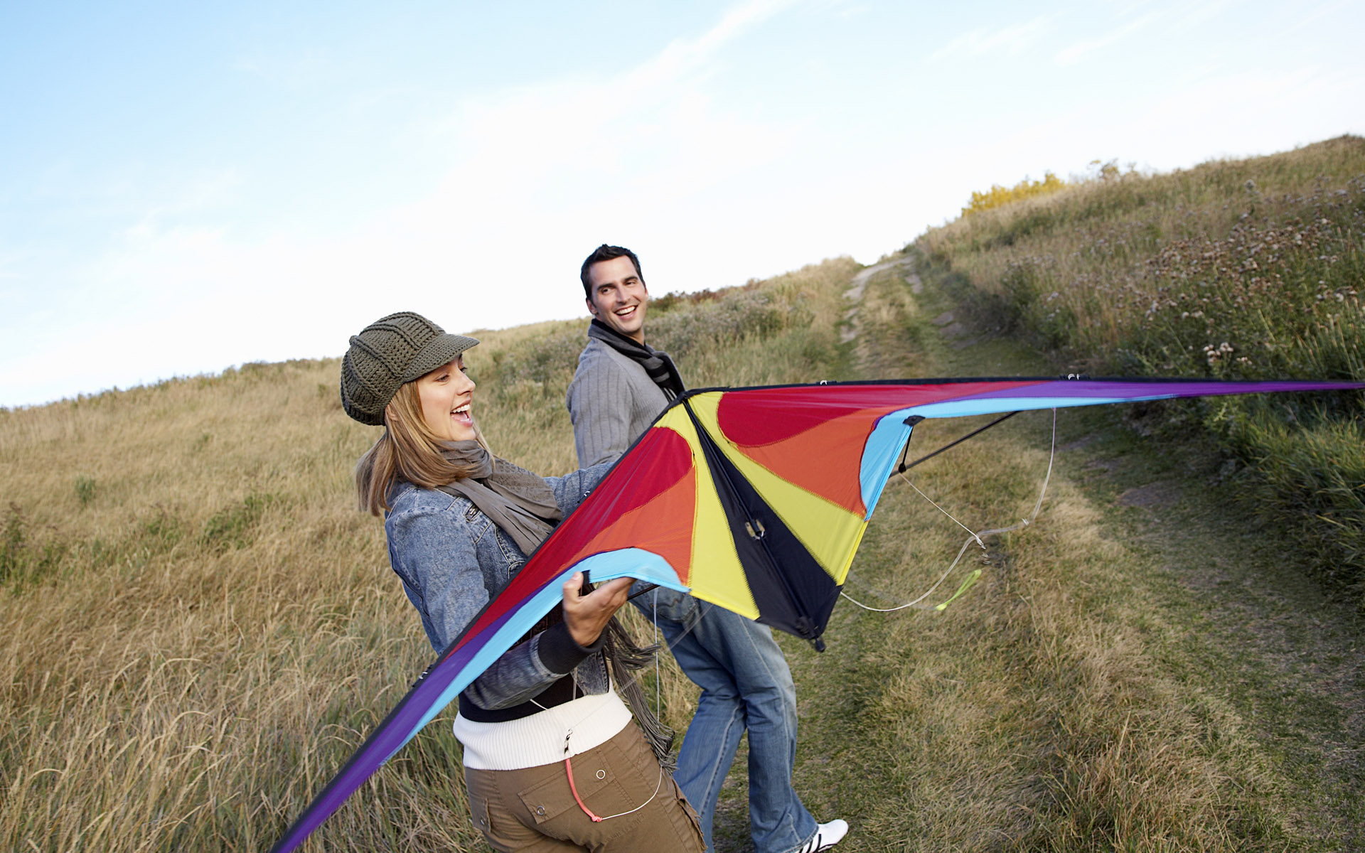 Скачать обои для рабочего стола Женщина и мужчина запускают змея и фото