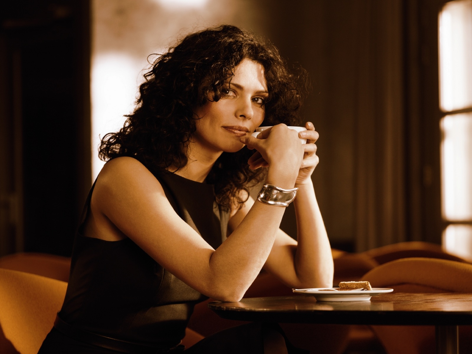 Скачать обои для рабочего стола Женщина пьет утренний крфе и фото