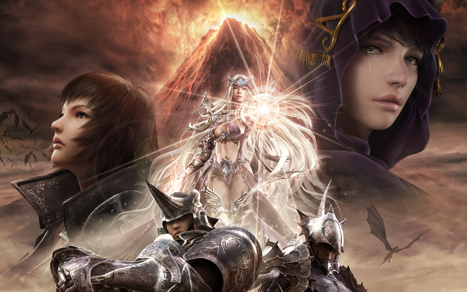 Скачать обои для рабочего стола Женщины-воительницы в свете пламени и фото