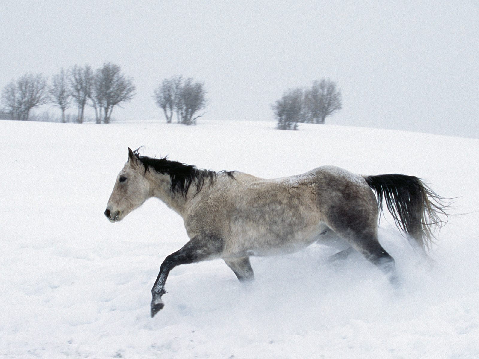 Скачать обои для рабочего стола Жеребец зимой и фото