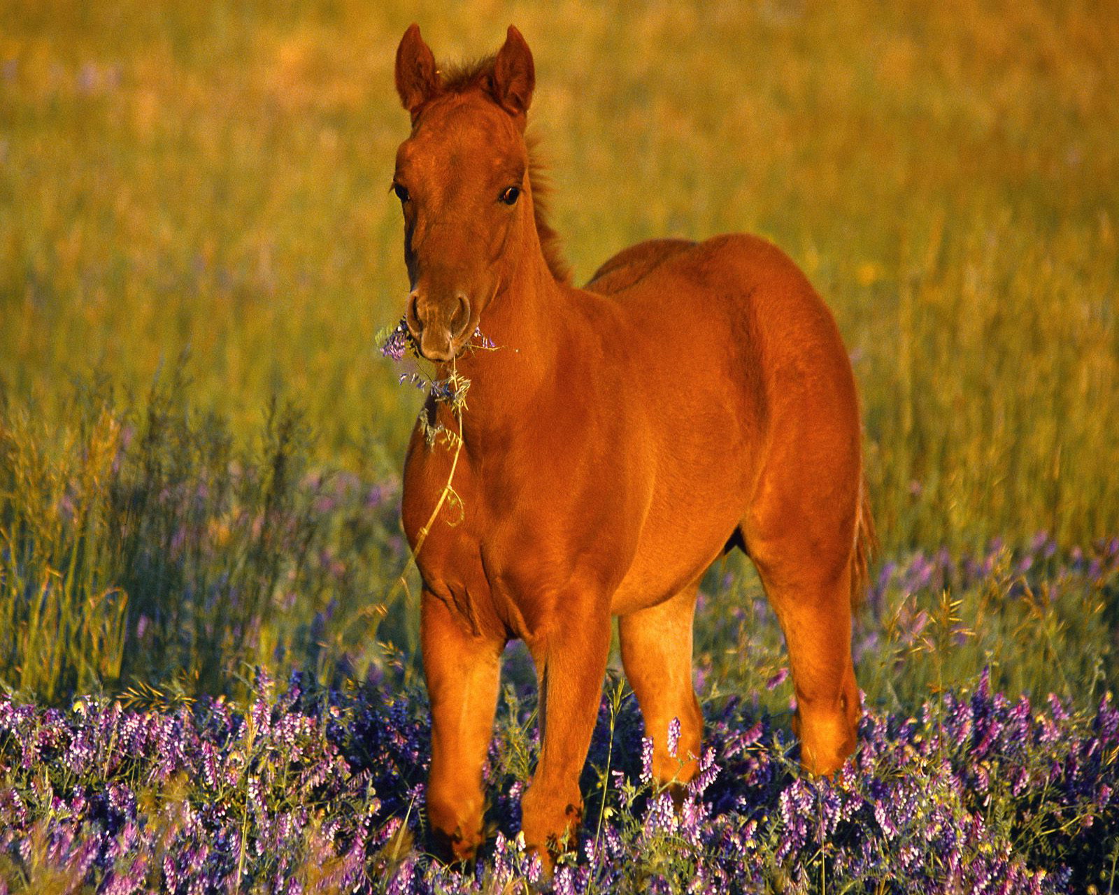 Скачать обои для рабочего стола Жеребенок в цветах и фото