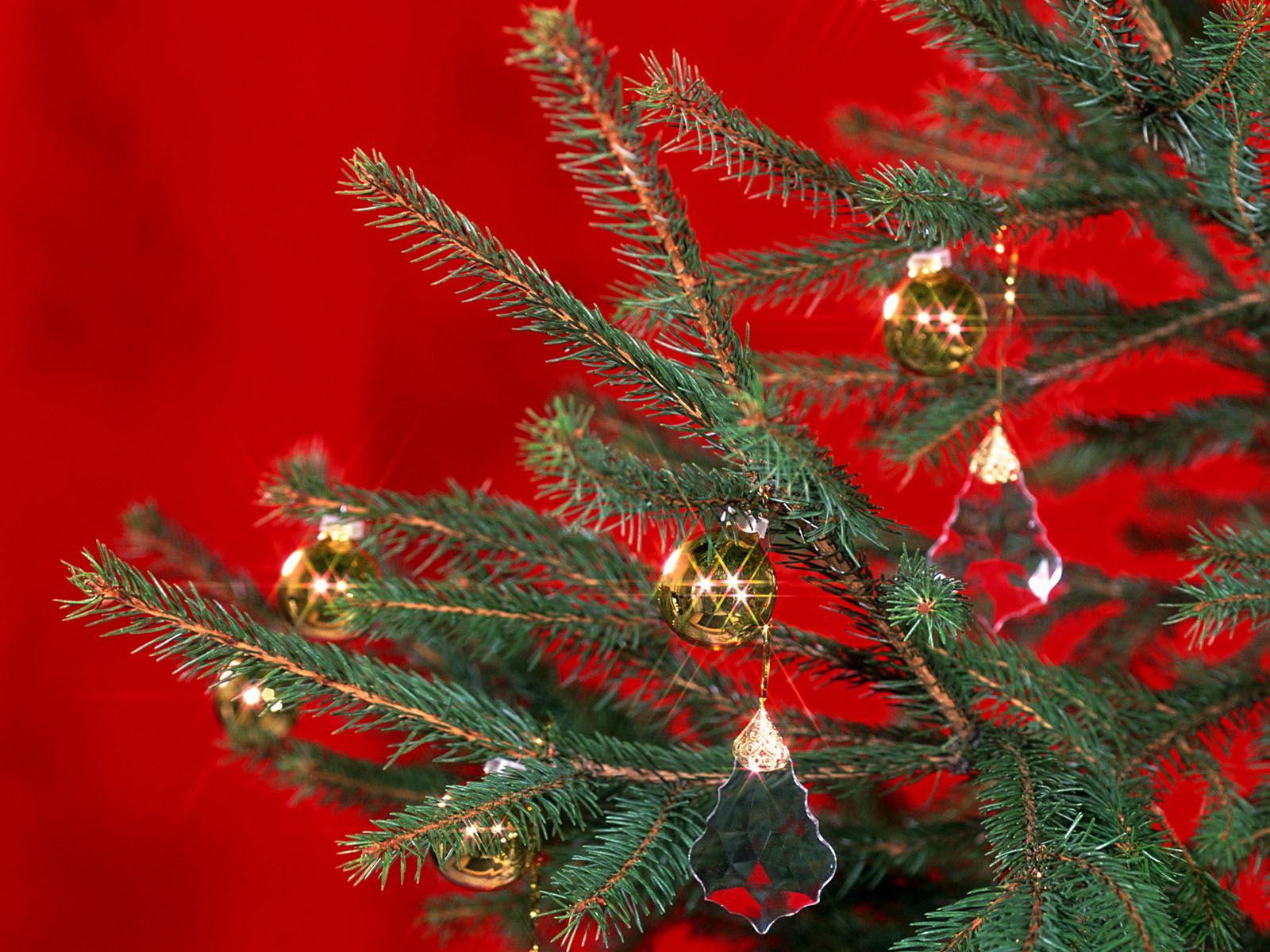Скачать обои для рабочего стола Живая елка с шарами и фото
