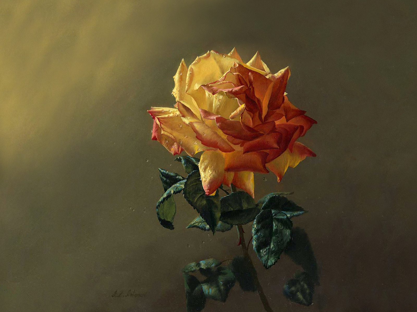Скачать обои для рабочего стола Живопись, цветок розы и фото