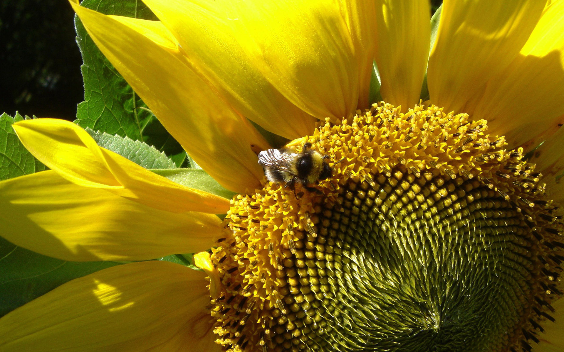 Скачать обои для рабочего стола Жмень на подсолнухе и фото