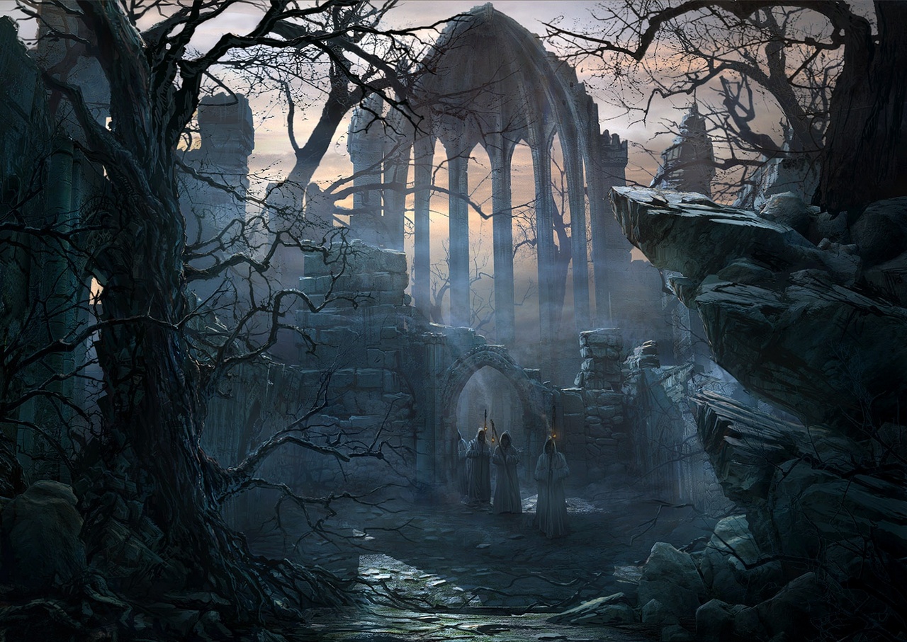 Скачать обои для рабочего стола Жрецы у развалин храма и фото