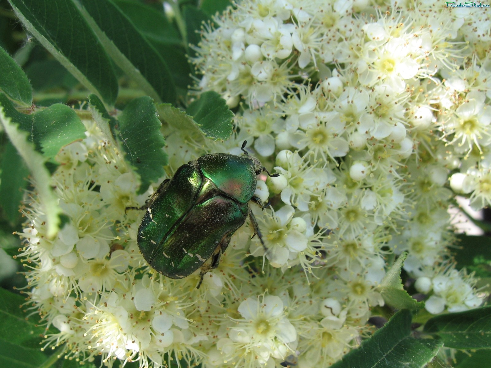 Скачать обои для рабочего стола Жук на белом цветке и фото