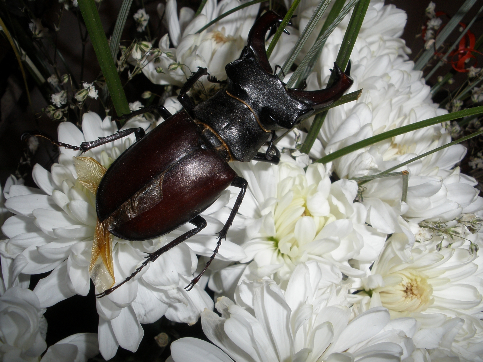 Обои Жук на цветах