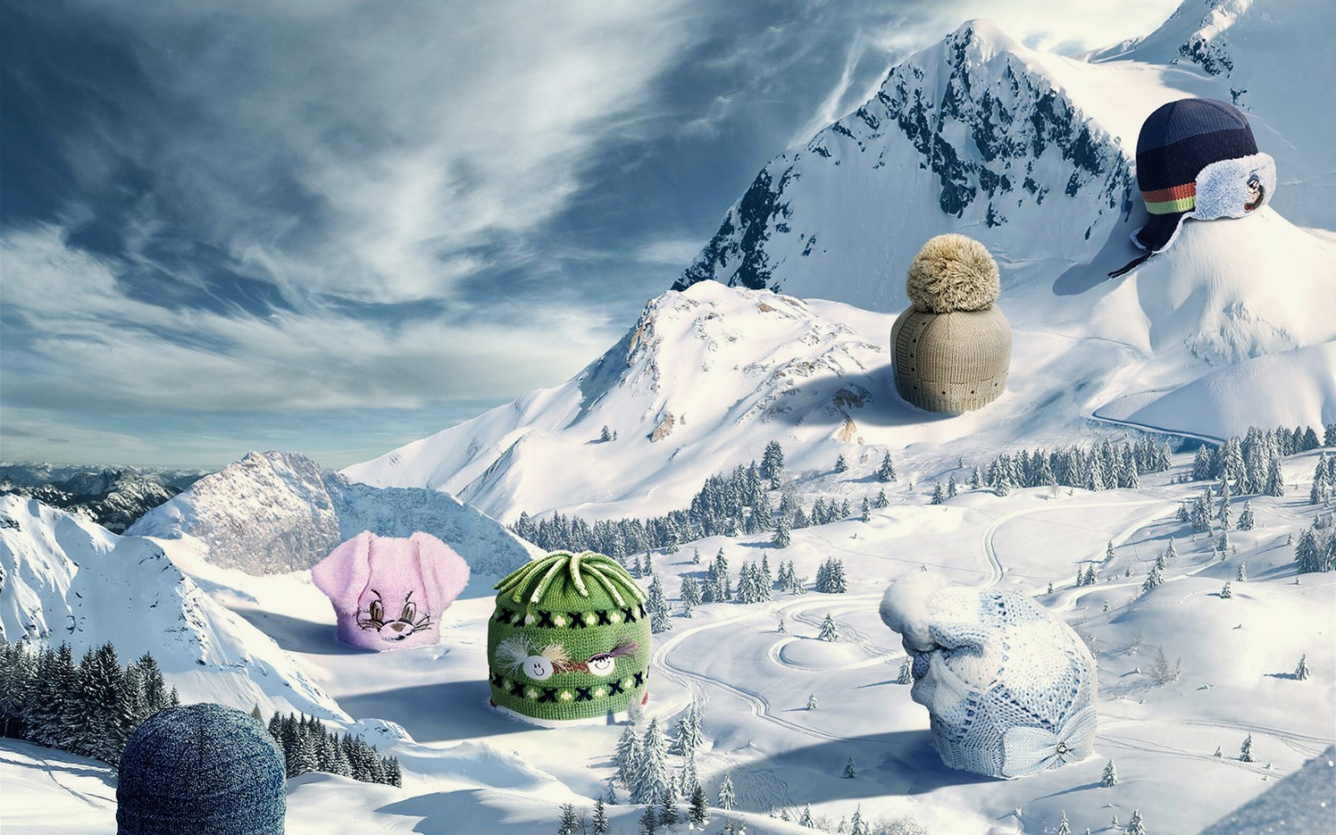 Скачать обои для рабочего стола Зимние шапки на снегу и фото