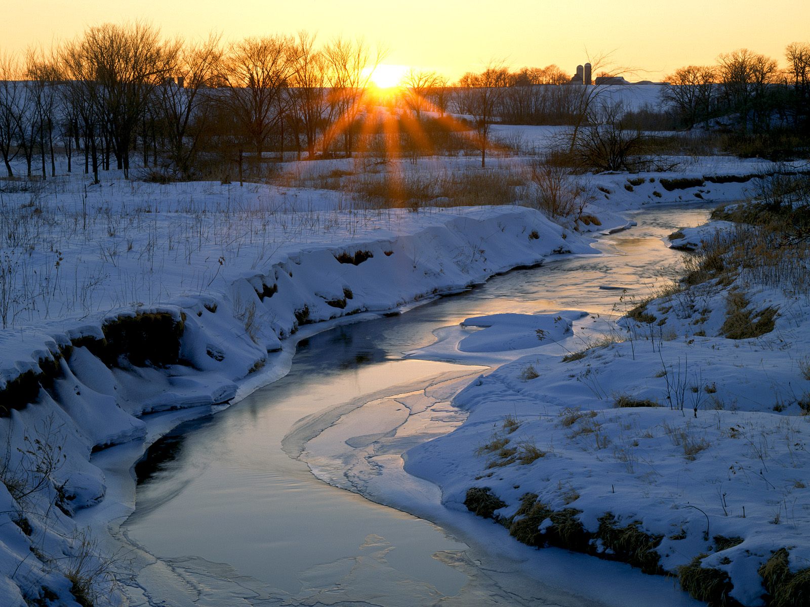 Скачать обои для рабочего стола Зимний закат и рекa и фото