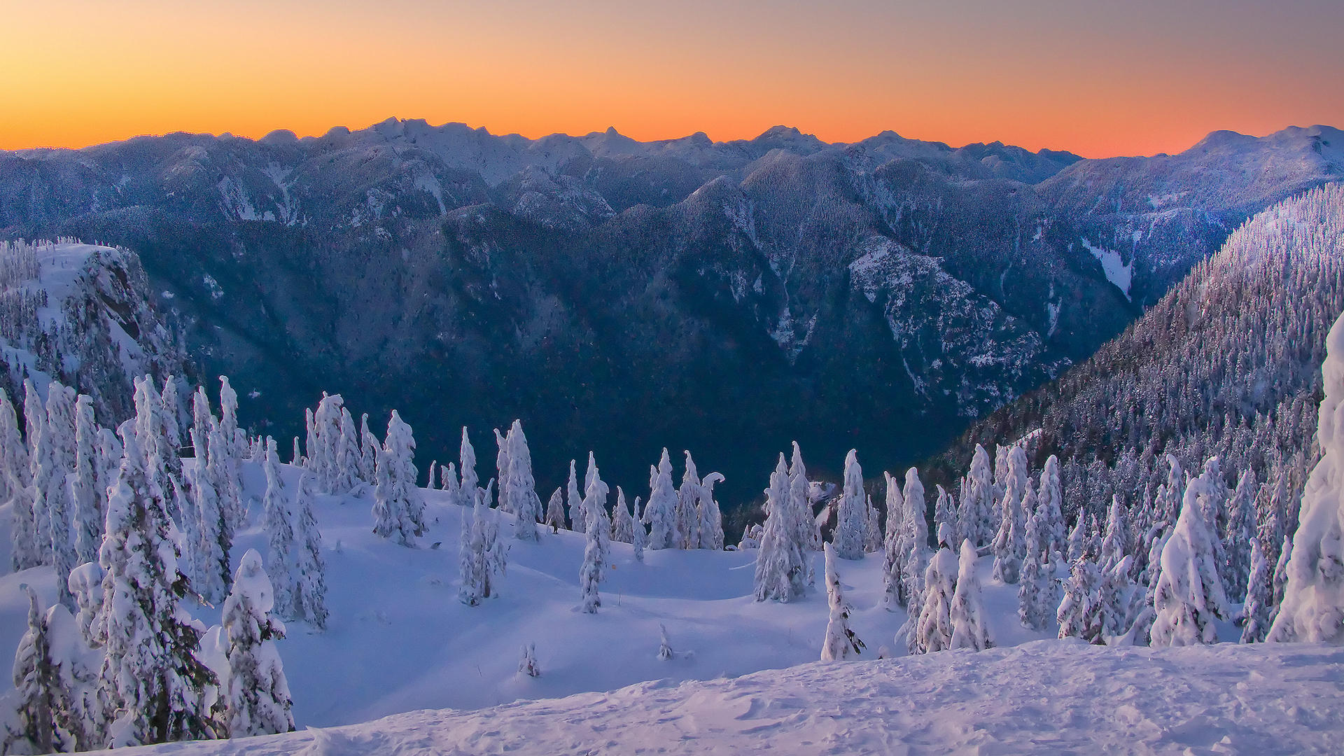 Скачать обои для рабочего стола Зимняя пора в бескрайних горах и фото