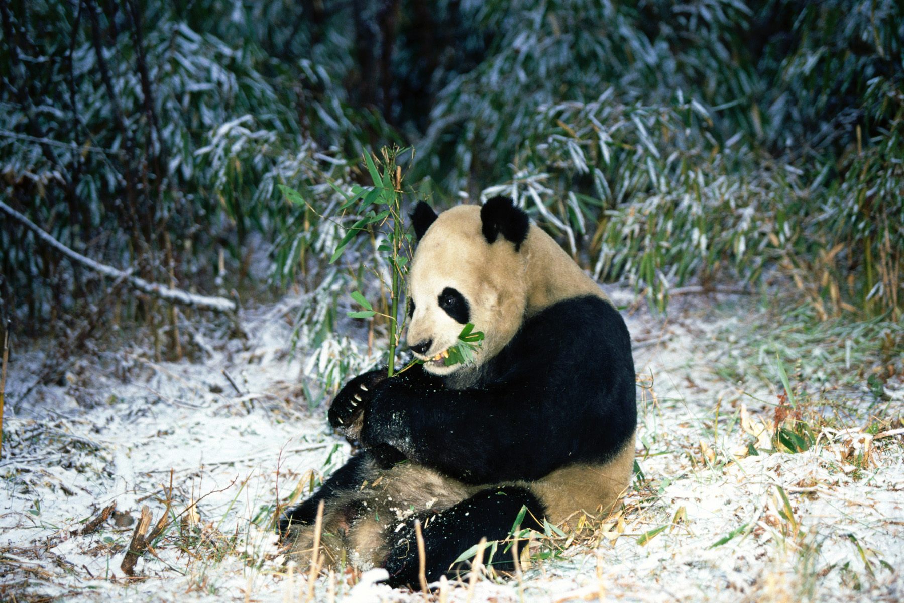 Скачать обои для рабочего стола Зимняя трапеза панды и фото