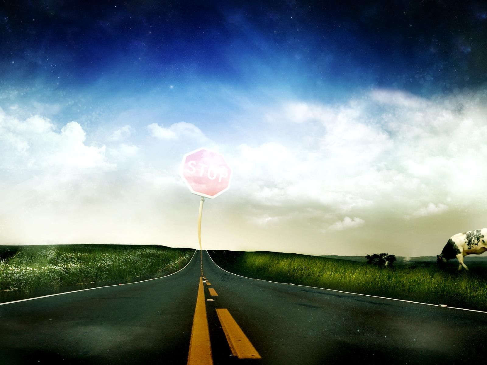 Скачать обои для рабочего стола Знак СТОП в конце пути и фото